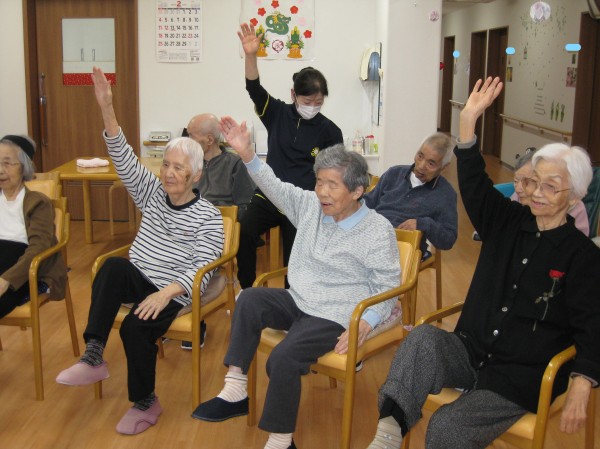 転倒予防の体操をしました。足腰が一番ですものねえ(笑) 手足が良く伸びていますね(^^♪