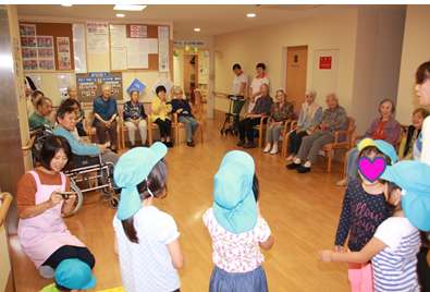 お元気で!というメッセージがありました。ご入居者の皆様のお顔はとても明るくいつまでも、ニコニコされて