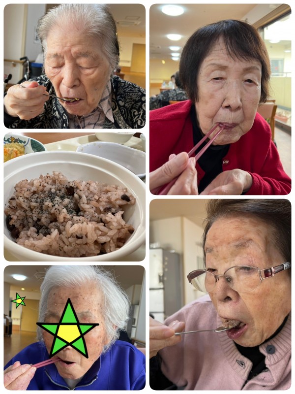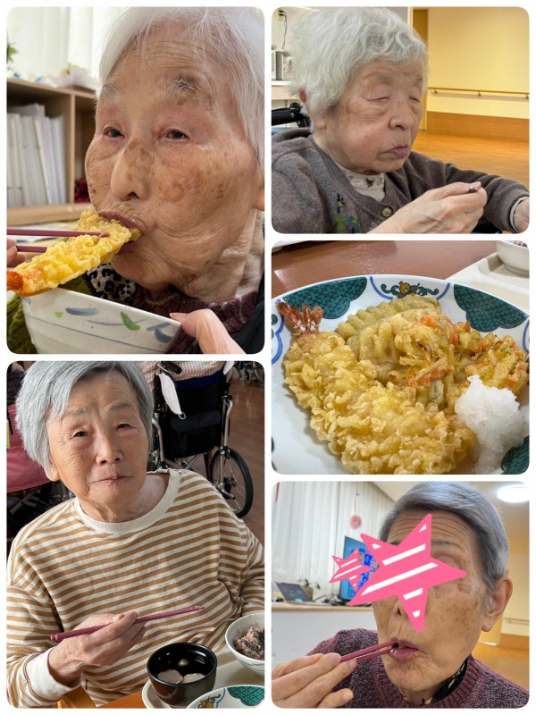 お昼は御赤飯と天麩羅でお祝い膳♪