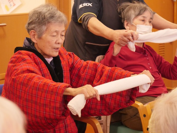 先日のタオル体操のご様子をお届けしまーすっ!!