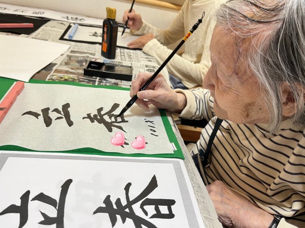 101歳様の元気の秘訣を書道レクリエーションで見せていただきました