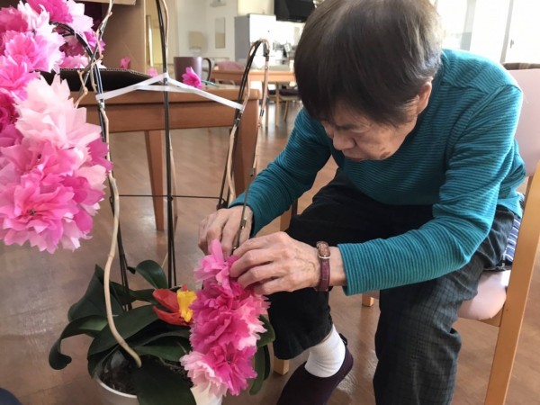 それに、お花紙で作った花をつけて行きます。