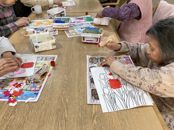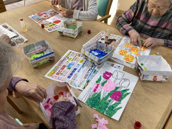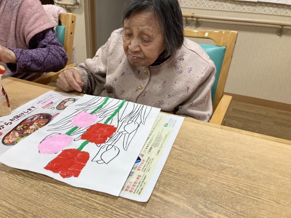 お好きな色紙を貼っていただき、きれいなお花が完成されたようです。