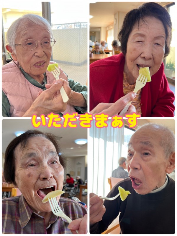 今日のおやつは、果物でぇ〜す!