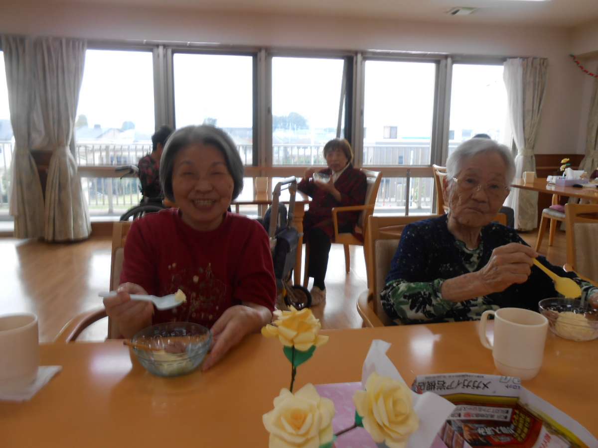そして最後にはチョコレートクリームとポッキーをトッピングしたバニラアイスクリームをおいしく頂きました。皆さん笑顔!!笑顔!!のひと時でした。