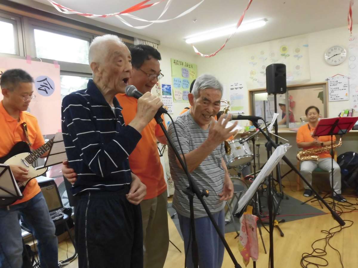 9/1【敬老会】です。≪エミリーバンド≫の皆さんの演奏です。歌の好きなご利用者様も一緒に歌いました。