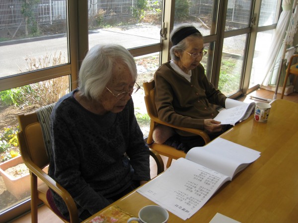秋の里・青い山脈・荒城の月を合唱しました。声が良く出るようになりました(笑)