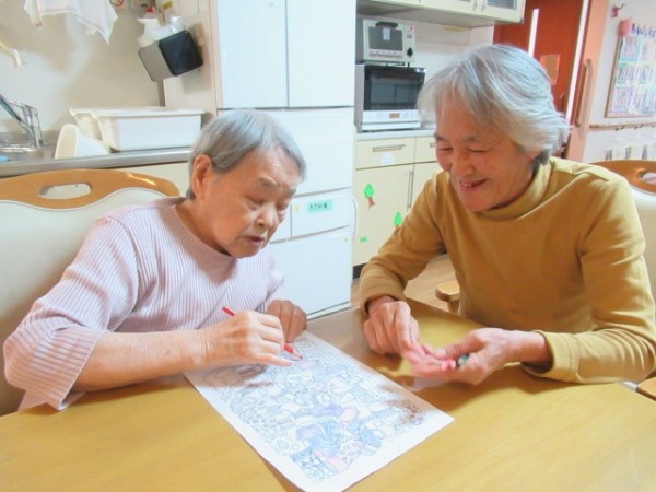 塗り絵も一緒にやればさらにもっと楽しいですね。