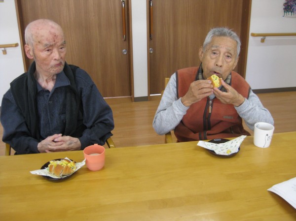 おやつに玉子ロールパンを召し上がられているご様子です( ^ω^)・・・