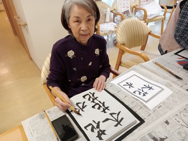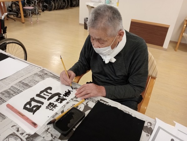 テラスで外気浴もできないので、しっぽりと『書』をはじめることに。