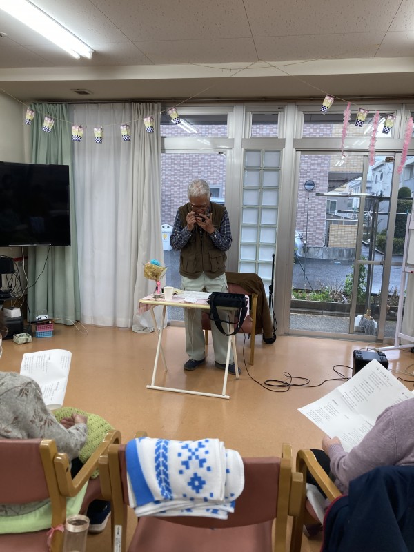 素敵なハーモニカ演奏と一緒にご利用者様も歌っていきます!しっかり声も出ていい感じです!!