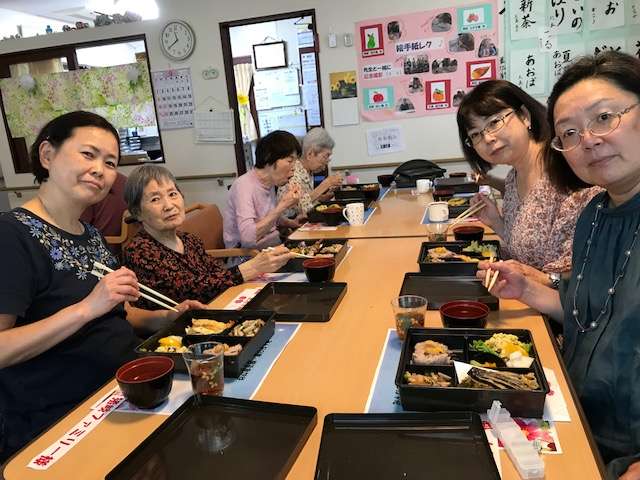お食事会 ご家族も一緒に敬老の日をお祝いしていただきました。敬老御膳、 とっても素敵に盛り付けられていますね。利用者様からも大歓声♪