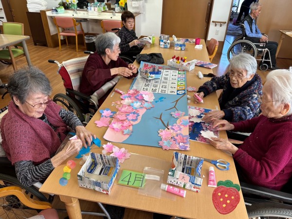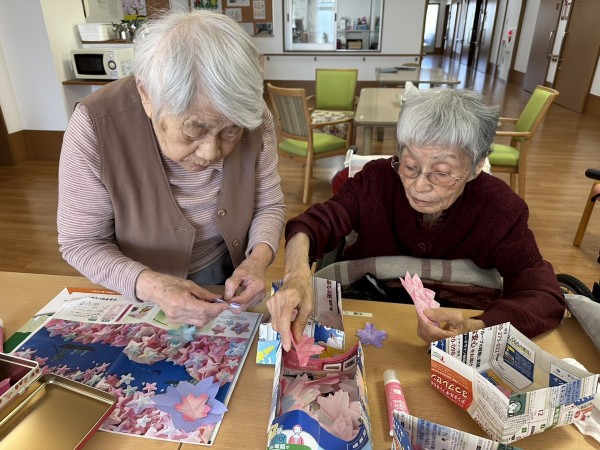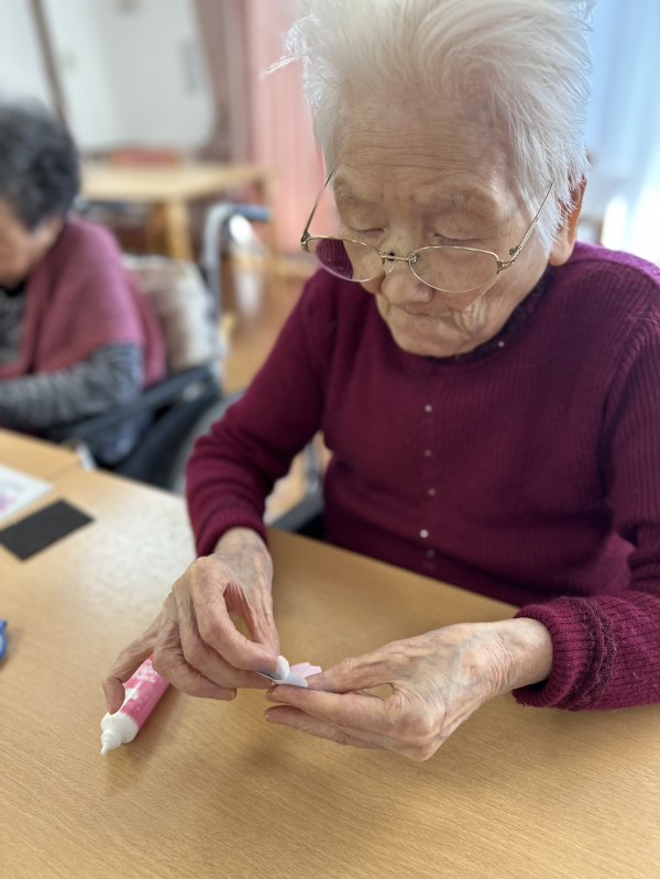 折り紙を折る・切る・貼るなどの作業を通じて、手指の巧緻性の維持・向上を図る。