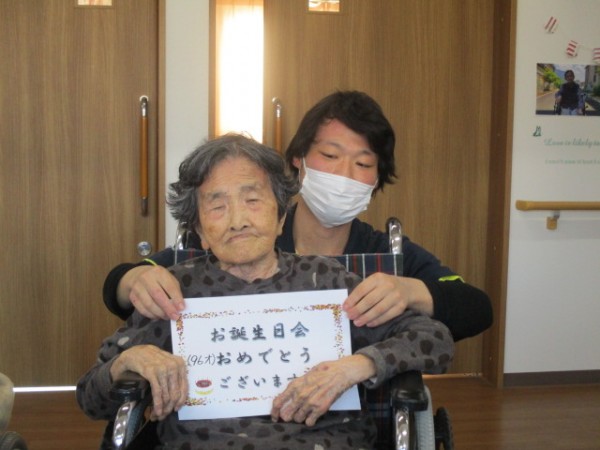 2階のご利用者様3月は3名の方がお誕生日です。96歳・88歳・86歳の方です。