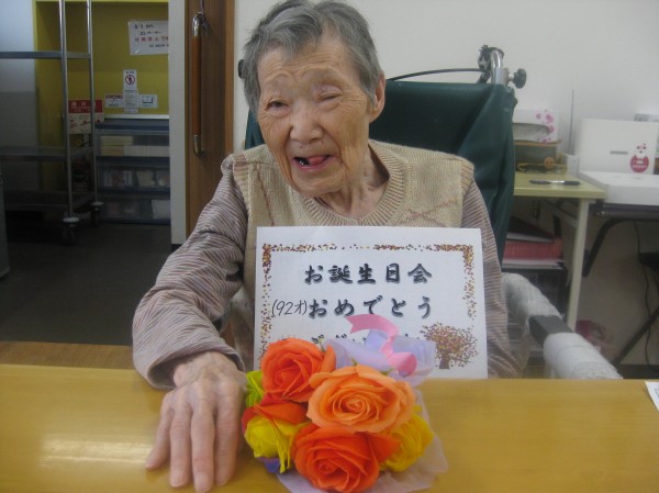 1階のご利用者様です。3月1日で92歳 お誕生日おめでとうございます!これからも元気にお過ごししましょうね!!