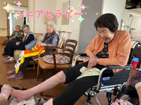 リビングでは、シニアセラピーを受けていらっしゃる奥様