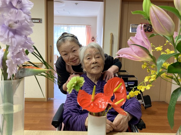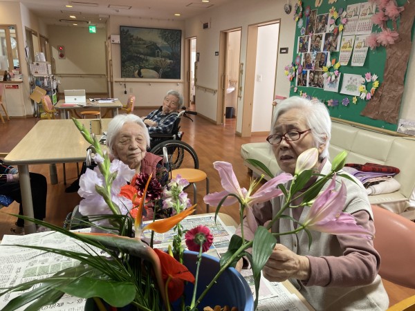 本日は華道クラブです!皆さん若かりし頃 お稽古をしていた方もいてお花を生けることが