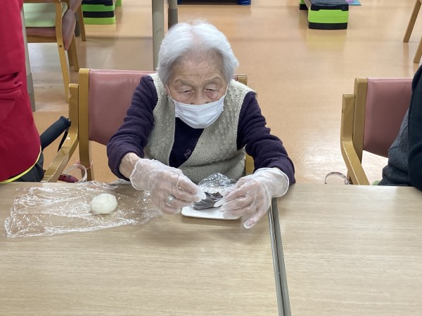 おはぎ完成でーす♪では皆様と一緒に「いただきまーす!」