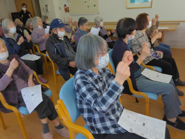 合間にはトンチ文字クイズやちょっとした手遊びなども行い、