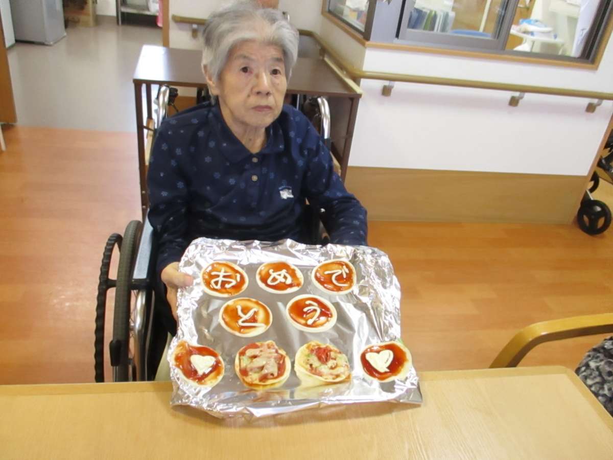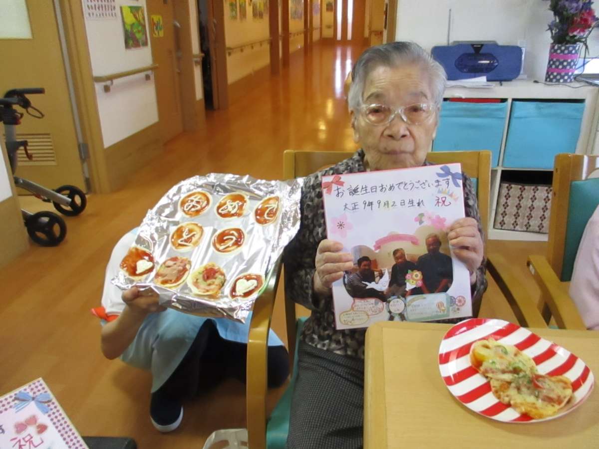 利用者様の、お誕生日会を、みなさんでやりました。この日は、おやつレクと一緒の日であり