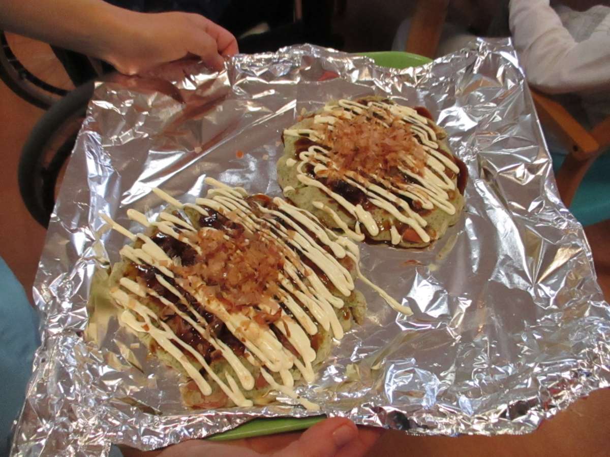 おやつに、「なんちゃってお好みケーキ」で、お誕生日のお祝いをしました。みなさん「美味しい」と言って