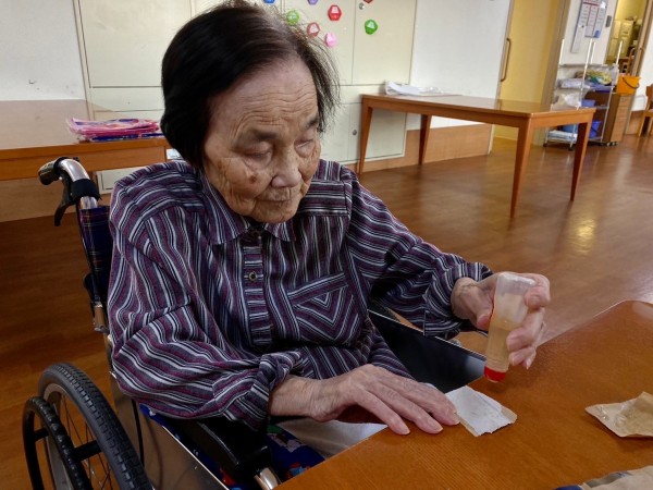 ご入居者様が糊付けをし肥やしをあたえ