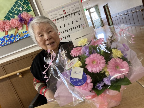 お花は利用者様のご家族がお祝いでご持参されました