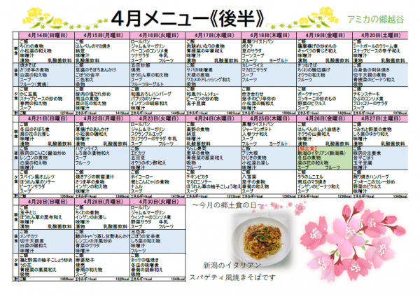 4月の献立表です