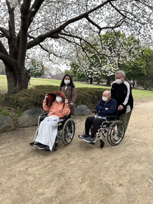 お花見の日はお休みの職員も散策のお手伝いに来てくれました。