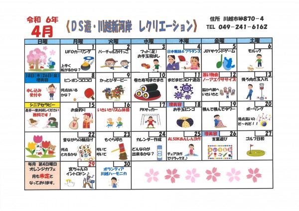 4月のレクリエーションカレンダーをアップしていきたいと思います。