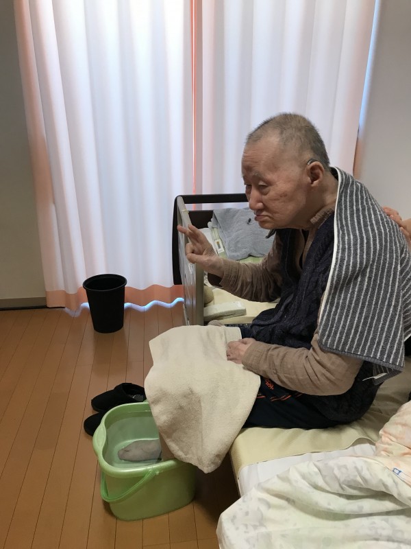 I様もご気分が良さそう~!そして看護師さんのこの笑顔!!関係性があってこそですね!