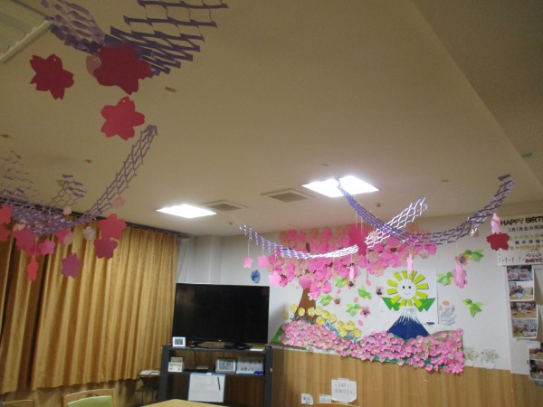天井にも桜の飾りつけをして雰囲気は上等ではないでしょうか…!