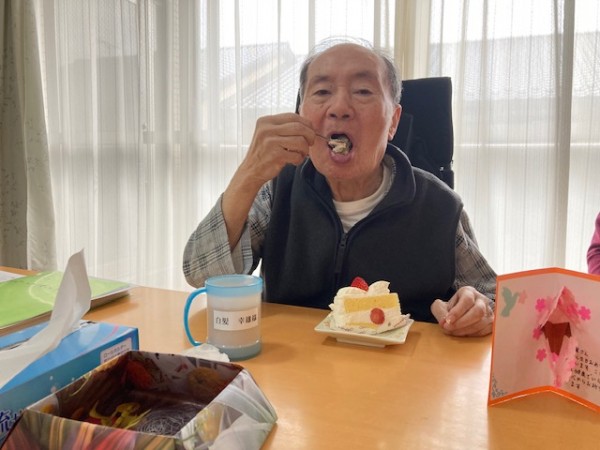 入居者さんと一緒にお誕生日の歌を歌いました。