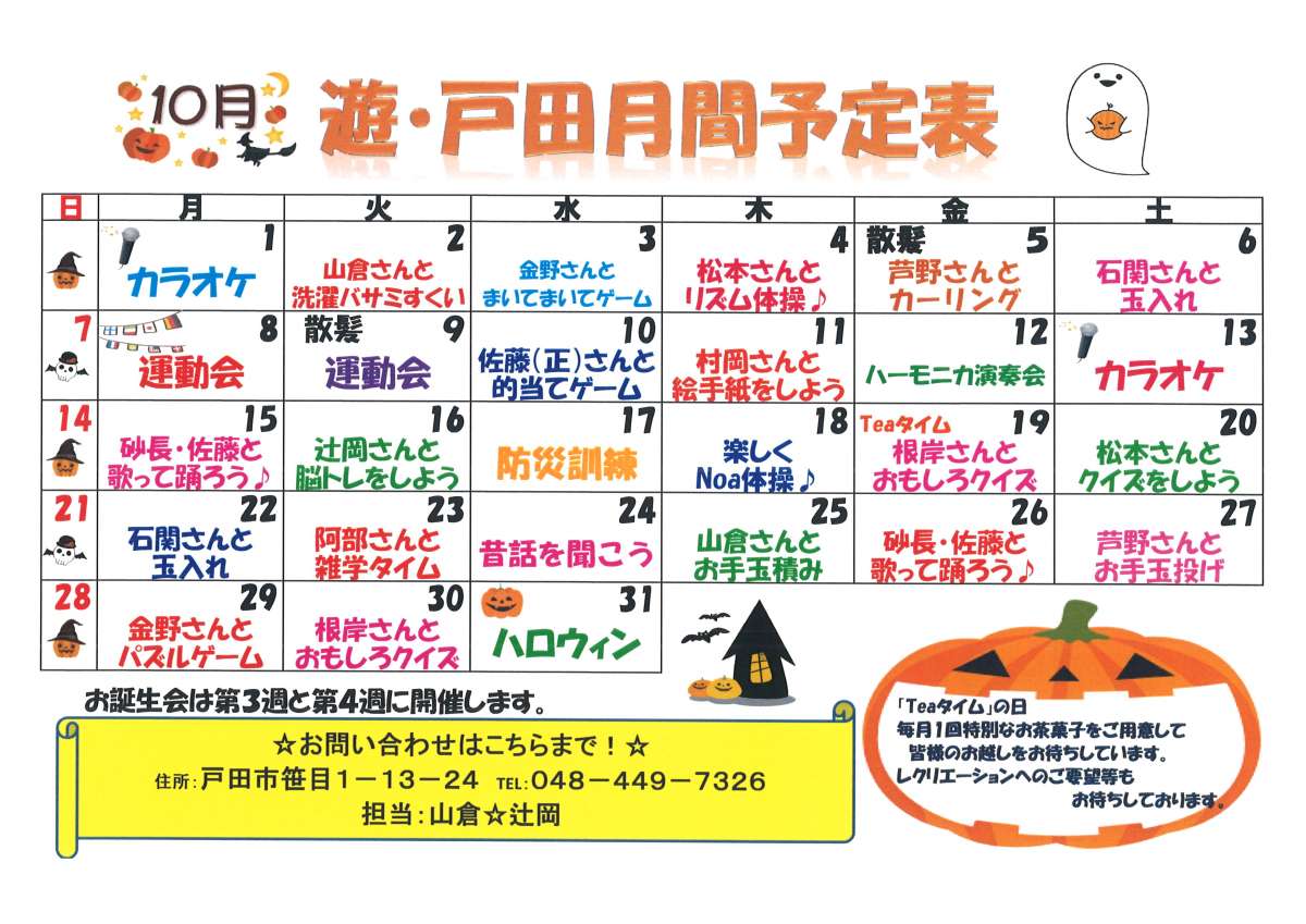 10月のレクの予定です♪