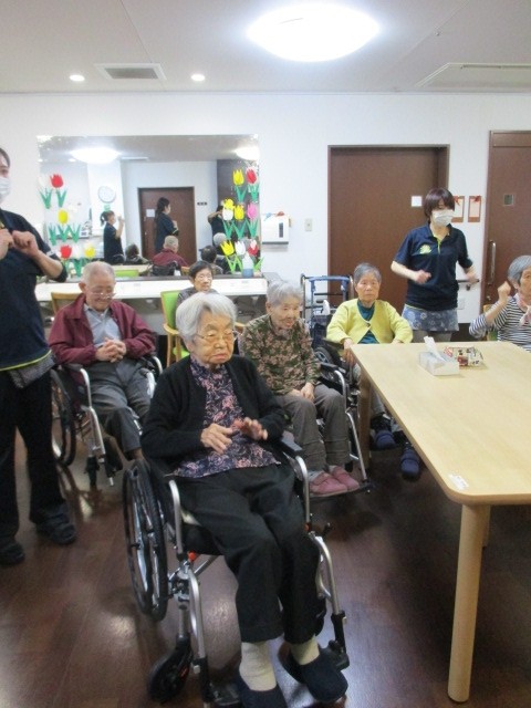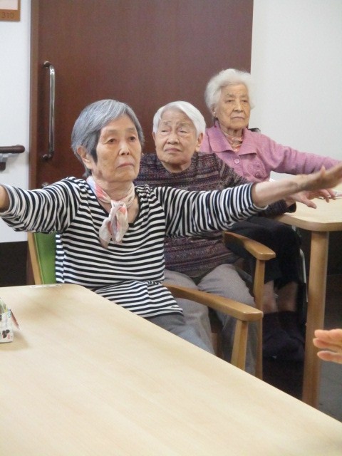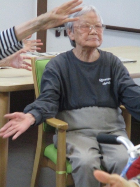 皆様フロアーに集まり先生の指導の元気いっぱいに手足を動かされていまし(^^)//
