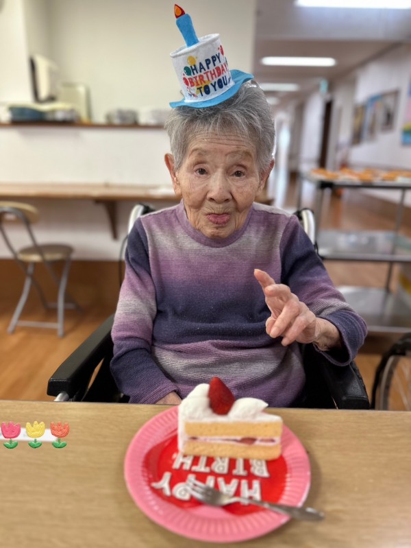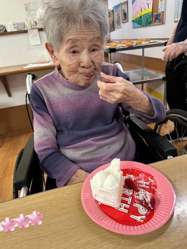 ご家族様からのお誕生日のお祝いのケーキに大喜びなU様♡とっても美味しそうに召し上がっていらっしゃいました♬