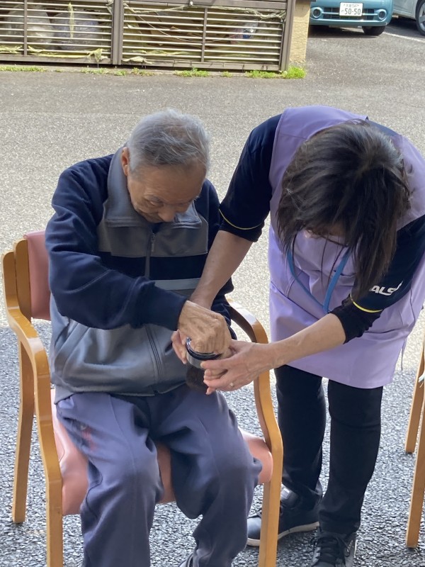 このレクは職員が「皆様に淹れたてのコーヒーを飲んでもらいたい」という熱い思いから始まりました。ALSOK介護では、「こんなレクがやりたい」等自分の理想の介護を追及する事が出来ます。ただいま、一緒に働く仲間を大募集しています。良かったらお気軽にご連絡ください。