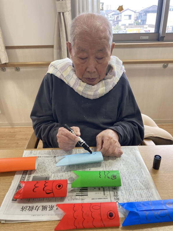 5月の飾りといえば鯉のぼり!皆さんで手作り鯉のぼりを作成中♪