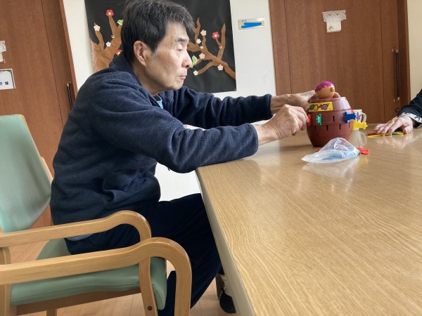 今回はレクリエーションで「黒ひげ危機一髪」を皆様と遊びました。