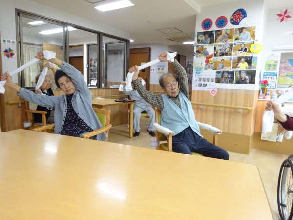タオル体操で皆さまハッスル!!ハッスル!!