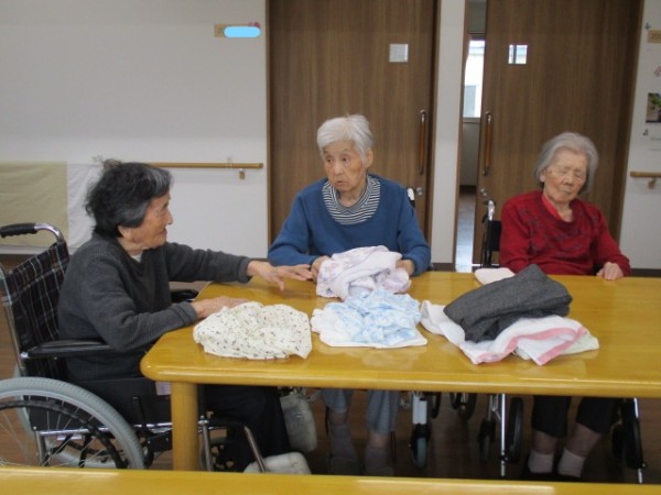 こんにちは! グループホームみんなの家・あきがせの介護ブログです! よろしくお願いいたします。 今日は2階でお手伝い(お洗濯物畳み)を行いました。そのご様子をお知らせいたします!