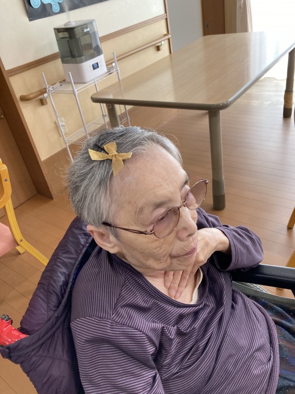 今回は1F訪問運動教室の前のおめかし、髪飾り付けました!です。