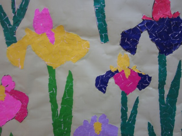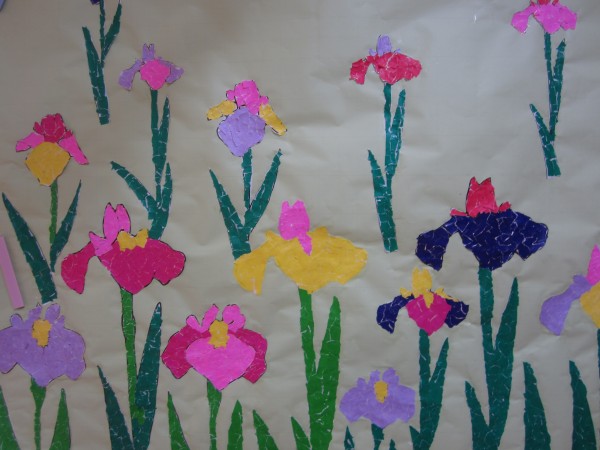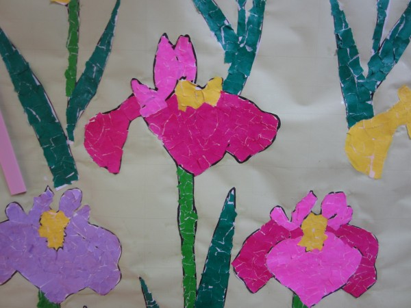 初夏の季節を告げる菖蒲のお花を、貼り絵作成しました(^^♪