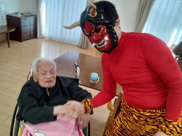 ★☆節分・鬼退治・豆まきレクリエーション赤鬼♪鈴木勝也ホーム長登場②階2025年令和7年✨ 『みんなの家 三橋6丁目 介護ブログ』☆★
