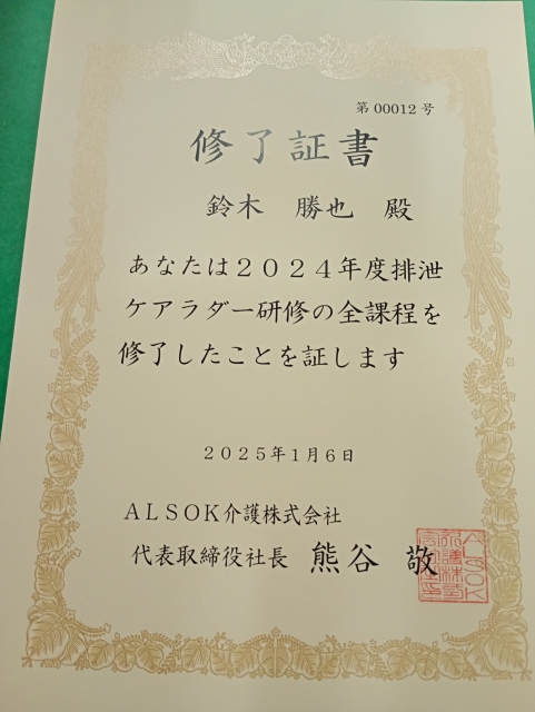 ★☆鈴木勝也ホーム長は排泄ケアマイスター認定証‼獲得‼祝ケアマイスター誕生‼2025年✨ 『みんなの家 三橋6丁目 介護ブログ』☆★