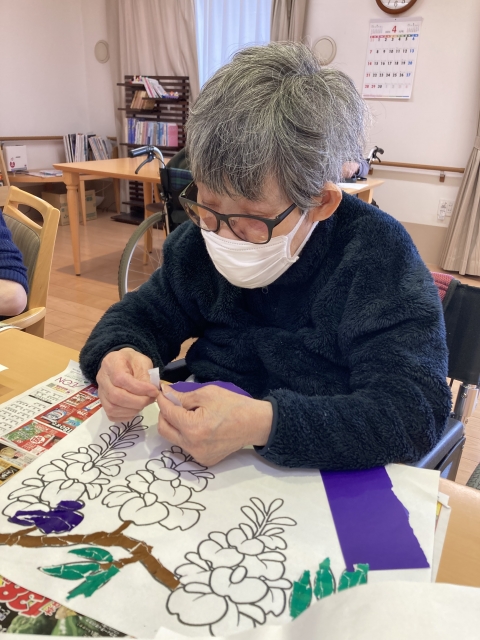 ★☆初夏の花「藤の花」貼り絵作成レクリエーション2024年✨ 『みんなの家 三橋6丁目 介護ブログ』☆★