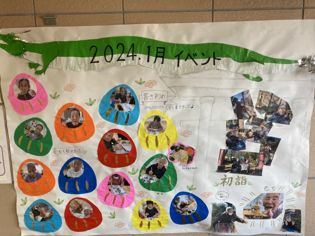 ★☆1月行事イベント初詣・書初めレクリエーション記念写真を掲示板掲載2024年✨ 『みんなの家 三橋6丁目 介護ブログ』☆★