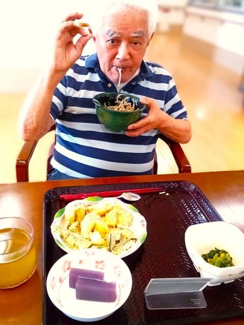 ★☆三橋6丁目の昼食‣鴨ネギ蕎麦と天麩羅御膳♬イベント食‼特別メニュー10月③階♬ 鈴木勝也ホーム長!舌鼓大絶賛2025年令和7年✨ 『みんなの家 三橋6丁目 介護ブログ』☆★
