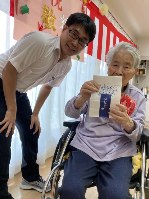 ★☆令和5年-敬老会実施-山田大誠ホーム長より白寿99歳祝い記念品贈呈2023年(^^✨ 『みんなの家・三橋6丁目・介護ブログ』☆★