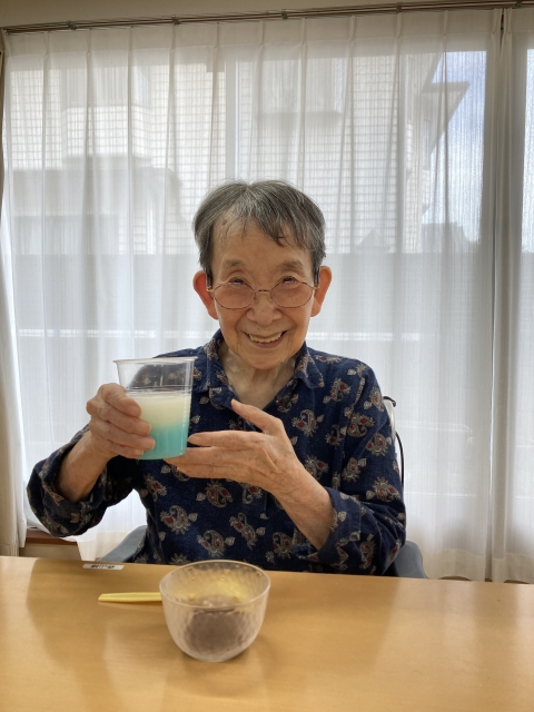 ★☆七夕手作りおやつ作りレクリエーション「水ようかん」②階記念撮影2023年(^^✨ 『みんなの家・三橋6丁目・介護ブログ』☆★